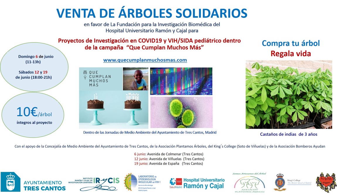 Esta actividad tendrá lugar dentro de las Jornadas de Medio Ambiente del Ayuntamiento de Tres Cantos y, por tanto, cuenta con el apoyo de su Concejalía de Medio Ambiente, además de la Asociación Plantamos Árboles, del King´s College (Soto de Viñuelas), de la Asociación Bomberos Ayudan y del IRYCIS y su órgano gestor la Fundación para la Investigación Biomédica del Hospital Universitario Ramón y Cajal (FIBioHRC).